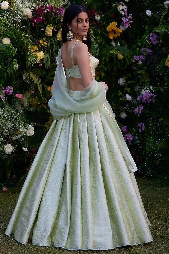 Rent Green Brocade Patchwork Embroidered Lehenga Set