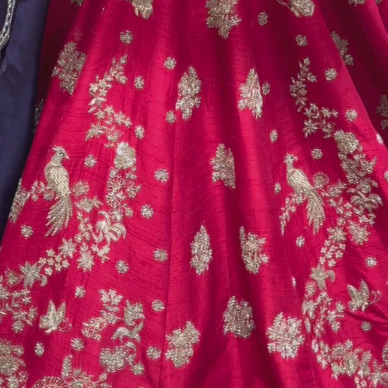 Rent Jayanti Reddy Red Embroidered Lehenga paired with purple embroidered silk blouse