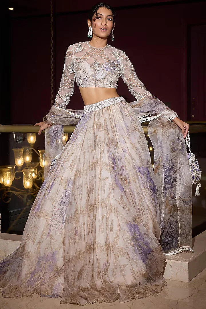 Rent Seema Gujral Nude Net Embroidered Lehenga Set
