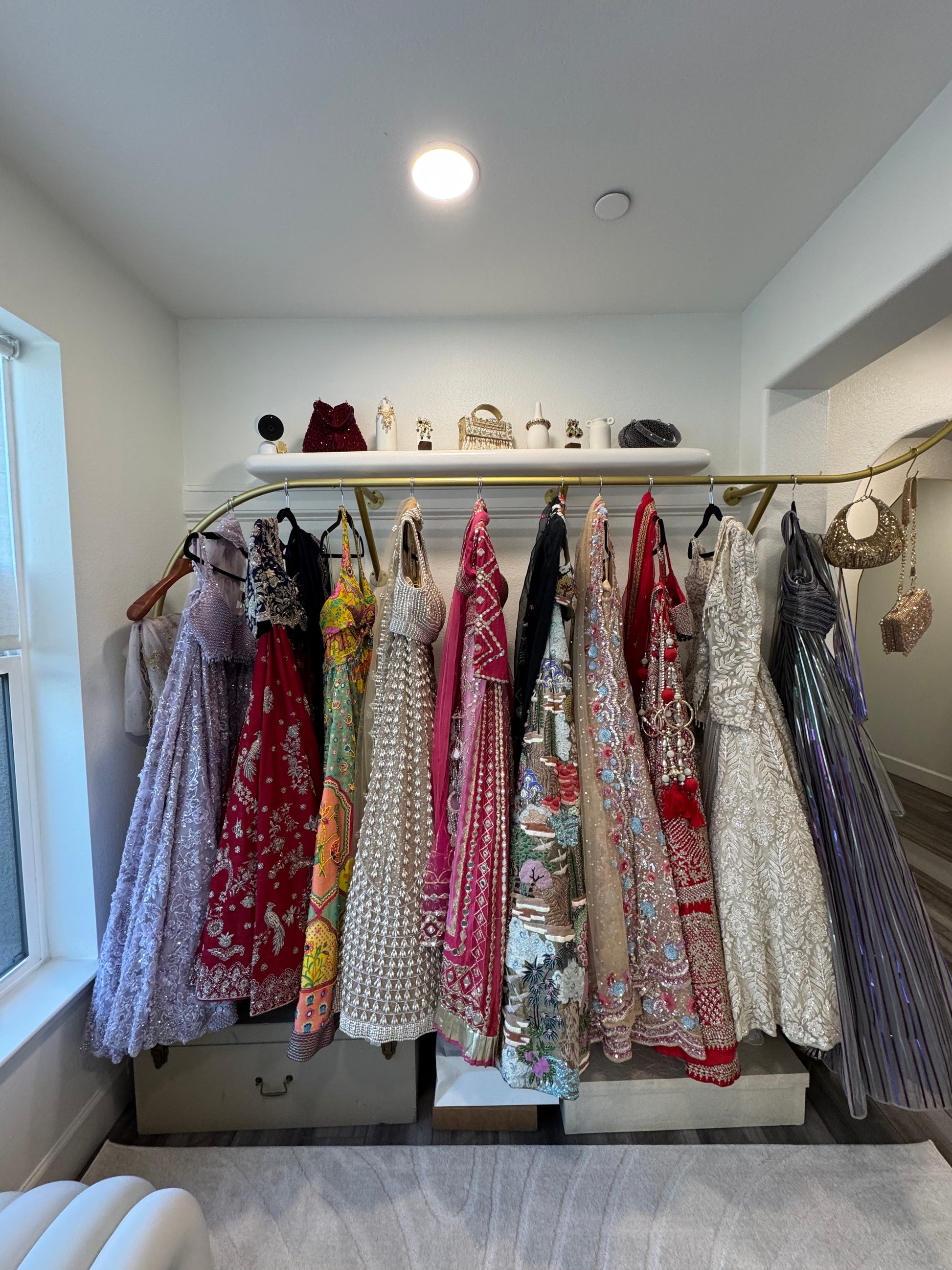 You're welcome to visit our studio in the Bay Area to try on outfits for your wedding or as a guest. The in-studio visit fee will be fully credited toward any order placed during your appointment.